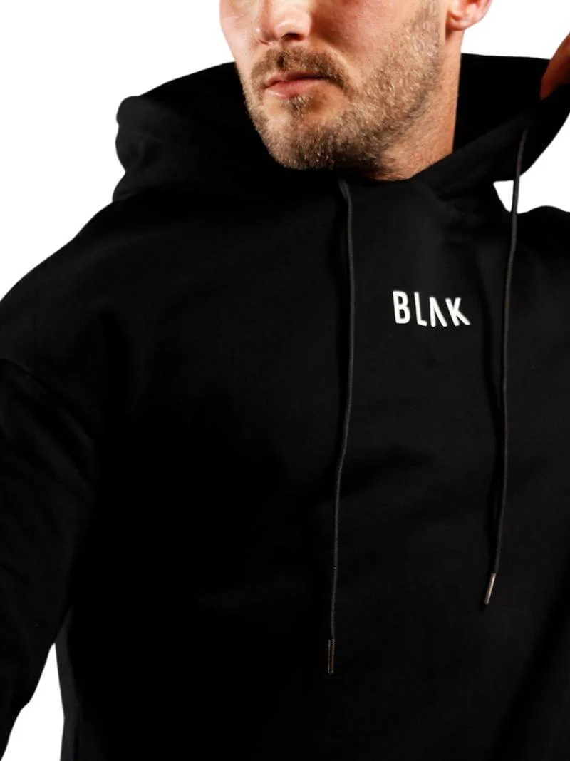 - Design – all-over black colour with small BLAK branding in white on the chest & embroidered on the hood