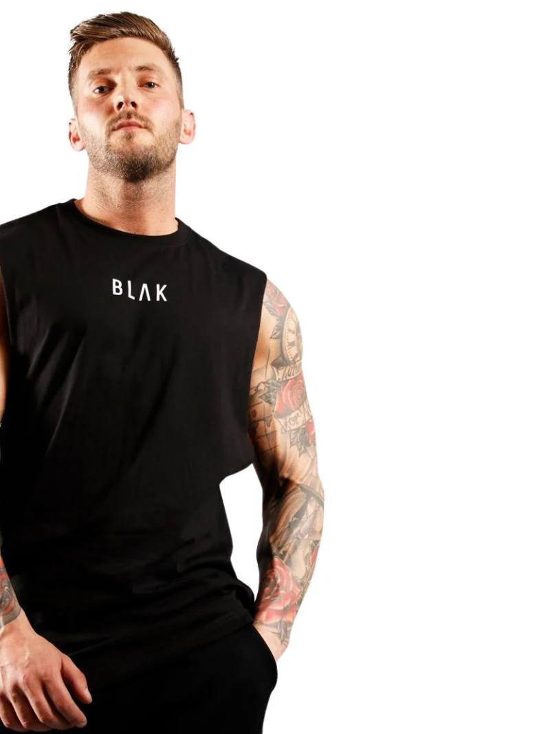 This BLAK Apparel men's oversized tank is black with large print BLAK branding in white or black across the back. Furthermore, there is a small logo print across the chest. This BLAK Apparel vest is oversized, dropped armhole, and boxy style for a modern and comfortable fit. It has a rounded neckline. The vest is the ultimate oversized tank top offering maximum comfort.