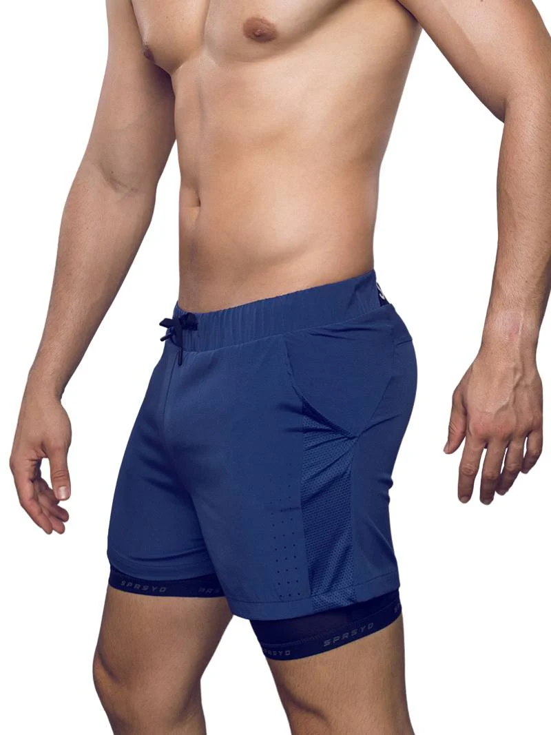 - Style - short leg workout shorts, inner tights layer with supportive pouch & phone pocket;